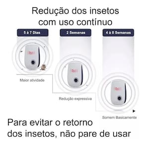 Benefícios: - utiliza som de alta frequência, para repelir todos os vermes instantaneamente - impede a infestação de pragas - protege a família - seguro para crianças e seus pets - sem produtos químicos ou exterminadores, somente pelo barulho sonoro - sem aquele mal cheiro de citronela ou qualquer tipo de cheiro como nos repelentes comuns. Ideal para quem tem alergia ou não gosta de nenhum tipo de cheiro forte, eficaz somente pelas ondas sonoras e imperceptível para as pessoas ou animais de estimação.