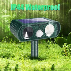 Características: 1. Operação movida a energia solar, sem necessidade de eletricidade externa. 2. Ondas ultrassônicas afastam animais indesejados em jardins, pátios e quintais. 3. Sensor de movimento PIR integrado para detecção precisa. 4. A luz estroboscópica LED assusta animais indesejados. 5. Design à prova d'água para uso externo em todos os climas. 6. Compacto, leve e fácil de instalar em qualquer lugar. 7. Ampla área de cobertura para grandes espaços ao ar livre. 8. Materiais duráveis garantem um desempenho duradouro. Aqui estão cenários comuns em que repelentes solares externos são adequados: 1. Jardins – Proteja flores, plantas e vegetais de animais. 2. Quintais – Mantenha animais indesejados longe de gramados e espaços ao ar livre. 3. Fazendas – Detém roedores e outros animais de plantações e áreas de armazenamento. 4. Pomares – Proteja as árvores frutíferas de pássaros e animais trepadeiras. 5. Pátios – Mantém uma área de relaxamento limpa e livre. 6. Garagens – Evita que pequenos animais entrem em espaços de armazenamento. 7. Terraços – Mantenha os pássaros longe de áreas de estar ao ar livre. 8. Parques de campismo – Garanta um ambiente seguro durante aventuras ao ar livre. 9. Piscinas – evita que os animais acessem ou sujem a área da piscina. 10. Áreas de lixo – Evita a eliminação de animais como guaxinins e gatos vadios. P1: Como funciona o repelente solar de animais? R1: O dispositivo usa ondas ultrassônicas e luzes estroboscópicas LED para espantar animais selvagens, alimentado por energia solar. P2: O repelente solar é seguro para animais de estimação e humanos? R2: Sim, as ondas ultrassônicas são amigáveis aos humanos e à maioria dos animais de estimação, visando apenas animais indesejados. P3: O dispositivo pode ser utilizado em tempo chuvoso? R3: Sim, tem um design à prova d'água adequado para uso externo em todas as condições climáticas. P4: Qual é o tamanho de uma área que o repelente de veado cobre? A4: O repelente normalmente cobre uma distância efetiva de cerca de 2,4 a 10 metros, dependendo do modelo. - Repelente humano eficaz de animais: o repelente ultrassônico de animais utiliza detecção de movimento para emitir ultrassom poderoso e luz LED piscando, afastando vários animais como esquilos, guaxinins e gatos humanamente sem prejudicá-los ou ser humanos - Ampla cobertura e alta eficiência: projetado com um ângulo de detecção de 110 graus e um alcance de até 10 metros, este dispositivo protege efetivamente seu jardim, plantas e propriedade de visitantes indesejados de animais - Alimentado por energia solar: com um painel solar montado na parte superior, este repelente de gatos aproveita a energia solar, promovendo a conservação de energia. Sua classificação IP44 à prova d'água garante funcionalidade mesmo em dias chuvosos, tornando-o ideal para uso ao ar livre - Fácil de usar: o sensor infravermelho passivo (PIR) detecta e aciona o movimento e, em seguida, o alto-falante ultrassônico emite ruído para espantar animais comuns ao ar livre. É muito adequado para jardins, pátios e fazendas - Instalação simples: fácil de montar em minutos; o repelente de guaxinim pode ser inserido no chão ou montado em árvores, cercas e paredes. Posicione-o de forma eficaz, garantindo que a unidade esteja 23-25 cm acima do solo para melhores resultados