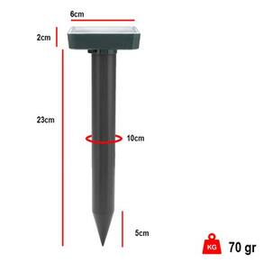 O Repelente Solar é projetado para repelir possíveis pestes de aproximar da area desejada, tais como cobras, toupeiras, ratos e roedores, utilizando ondas ultrassônicas em conjunto de vibrações.