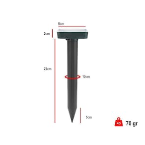 O Repelente solar é projetado para repelir possiveis pestes de aproximar da area desejada, tais como cobras, topeiras, ratos e roedores, utilizando ondas ultrassônicas em conjunto de vibrações.