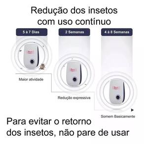 Recomendação: - O Repelente eletrônico deve ficar ligado 24h por dia, tendo resultados às 48hs de uso contínuo; - Cada repelente protege até 150 metros quadrados; - Cada cômodo onde deseja proteção deve possuir pelo menos um aparelho instalado; - Não deve existir nenhum obstáculo na frente do aparelho em um raio de 1 metro; - É ideal deixar uma fresta na janela ou porta durante o dia para que os insetos possam sair.