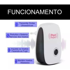 Benefícios: - Utiliza som de alta frequência, para repelir todos os vermes instantaneamente - Impede a infestação de pragas - Protege a Família - Seguro para Crianças e seus Pets - Sem produtos químicos ou exterminadores, somente pelo barulho sonoro - Sem aquele mal cheiro de citronela ou qualquer tipo de cheiro como nos repelentes comuns. Ideal para quem tem alergia ou não gosta de nenhum tipo de cheiro forte, eficaz somente pelas ondas sonoras e imperceptível para as pessoas ou animais de estimação.