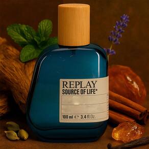 O Replay Source of Life For Man Eau de Toilette 100ml é um perfume amadeirado especiado que celebra a energia vital da natureza. Lançado em 2023, inspira-se na força da água e da terra, combinando notas frescas de elemi, menta e resina balsâmica com um coração de lavanda, canela e cardamomo, finalizado por uma base de cedro da Virgínia e vanilina natural. Parte da coleção ?Earth Made?, utiliza ingredientes naturais e embalagens sustentáveis, como tampas de bambu e vidro reciclado. Ideal para homens que buscam frescor e sofisticação, é perfeito para o dia a dia ou ocasiões casuais.