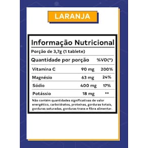 Ingredientes: - Óxido de magnésio - Ácido ascórbico - Cloreto de potássio - Estabilizantes sorbitol, bicarbonato de sódio e polivinilpirrolidona - Acidulantes ácido cítrico e polietileno glicol - Aromatizante - Antiumectante dióxido de silício - Edulcorantes steviol - Corante amarelo crepúsculo