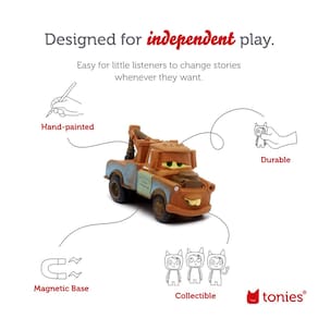 - Inclui personagem de brinquedo Mater com 4 músicas, 2 histórias e tempo total de execução de aproximadamente 25 minutos. Faixa etária recomendada: 4+, Idioma: inglês.