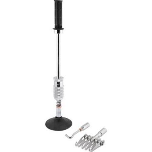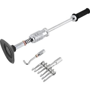 1 Repuxadeira. Acompanha: 1 ventosa 125 mm. Indicada para uso em martelinho de ouro, para desamassar latarias. Possui batedor com mola que auxilia no trabalho, diminuindo o esforço do operador. Material: Metálico Força de tração: 5 kg Diâmetro da ventosa: 125 mm Comprimento total: 55,0 Diâmetro do batedor: 47 mm Diâmetro do corpo do repuxador: 15 mm Diâmetro do punho: 31 mm Massa aproximada.: 2,2 kg - E CDC : legal: 90 dias Marca: Não Informado