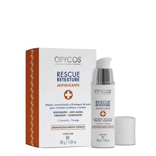 Rescue Retexture creme antiglicante para peles ásperas Opycos/30g Rescue Retexture é creme indicado para peles ásperas, espessas, opacas e fotoenvelhecidas. Minimiza rugas, linhas de expressão, equilibra os níveis de hidratação, protege contra radicais livres e reforça a barreira cutânea corrigindo e revertendo os danos causados à pele pelo consumo excessivo de açúcar e carboidratos. Renovador de impacto, ele devolve firmeza, tônus, luminosidade, jovialidade e textura suave à pele. Indicado também para pessoas diabéticas e mulheres em período de menopausa cujo processo de colagenase e elastase avançam gerando afinamento, envelhecimento e flacidez à pele. Indicação: . Peles envelhecidas, flácidas e desvitalizadas . Peles ásperas e espessas . Pessoas diabéticas . Peles glicadas pelo excesso de consumo de açúcares e carboidratos . Mulheres menopausadas Benefícios . Antiglicante . Antioxidante . Hidratante . Firmador . Geroprotetor . Previne manchas . Inibidor de elastase e colagenase . Age na senescência celular Importante: Pode ser Utilizado por pessoas diabéticas, celíacas, pacientes oncológicos, gestantes, lactantes, intolerantes à lactose e veganos. Princípios Ativos: L-Carnosina e Pomage Dermatologicamente Testado / Não testado em animais. Conteúdo: 30g. Rendimento: 25 aplicações de acordo com o protocolo sugerido. Validade: 2 anos após a fabricação. Armazenamento: Conservar em local fresco e ao abrigo da luz e calor. Manter fora do alcance das crianças. Precauções: Uso externo somente. Não ingerir. Caso ocorram sinais de irritação, retirar o produto e suspender o uso. Evitar contato com os olhos. Para o uso durante a gravidez, consulte um médico. Indicações de uso: Com a pele limpa e seca, aplicar o Rescue Retexture de 1 a 3 vezes ao dia, aguardar absorção e finalizar com filtro solar. Anvisa Processo nº 25351.482663/2019-08 Marca: Não Informado Ean: 7898953746334