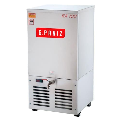 Resfriador De água Ra100 Plus Inox G.paniz Resfriador 110v Resfriador de Água RA100 Plus Inox G.Paniz. Desenvolvido para auxiliar em panificadoras e similares, fornecendo água gelada para as mais diversas receitas. Isolamento em peça única de poliuretano expandido. Controlador de temperatura digital. Temperatura de trabalho de 3 C a 7 C. Projetado para ambientes de até 30 C. Sem dosador. Este equipamento é destinado a manter a água sempre em temperatura controlada, adequada na fabricação de massas em geral. Estrutura em chapa inox, reservatório da água de poliestireno de alto impacto. CAPACIDADE: 100 Litros de massa pronta. CONSUMO: 0,3 kW/h. POTÊNCIA: 1,5 Cv. DIMENSÕES (CxAxL) 55,5x121x46 cm. Equipamento certificado pelo OCP 0070 conforme Portaria INMETRO - 148/2022. Resfriador de Água RA100 Plus G.Paniz é na Atau. Marca - G.Paniz Modelo - RA100 Capacidade - 100 litros Frente - 55 cm. Altura - 1,21 m. Profundidade - 46 cm. Temperatura - 3à 7 C Peso - 43 Kg. Consumo - 0,3 Kw/h Ean: 7898654585324
