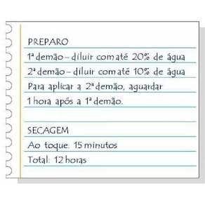 Diluições: 01 parte do produto em: 05 partes de água acabamento brilhante 07 partes de água acabamento semi-brilhante 10 partes de água acabamento fosco