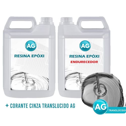 R: A Resina Epóxi 1Kg + Cor Cinza Translúcido Ag Baixa Espessura possui uma