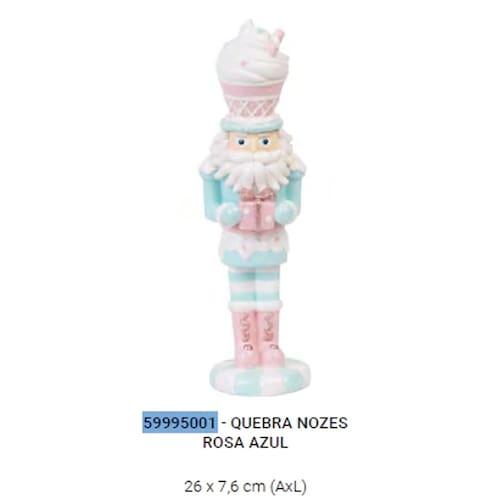 Adicione um toque divertido e colorido à sua decoração natalina com o encantador Quebra Nozes em Resina. Esta peça combina um design lúdico e festivo, perfeita para celebrar a magia do Natal. Características: Dimensões: 26 cm de altura x 7,6 cm de largura. Design: O Quebra Nozes apresenta uma paleta de cores rosa e azul, com detalhes delicados que capturam a essência festiva da temporada. Ele é representado segurando um doce, simbolizando a alegria e a doçura do Natal. Material: Fabricado em resina de alta qualidade, que proporciona durabilidade e uma apresentação encantadora. A pintura vibrante e os acabamentos refinados tornam esta peça um verdadeiro destaque em qualquer ambiente. Uso: Ideal para ser colocado em mesas, estantes ou como parte de um cenário natalino maior. A peça é perfeita para aqueles que apreciam um estilo de decoração mais divertido e colorido. Marca: Não Informado
