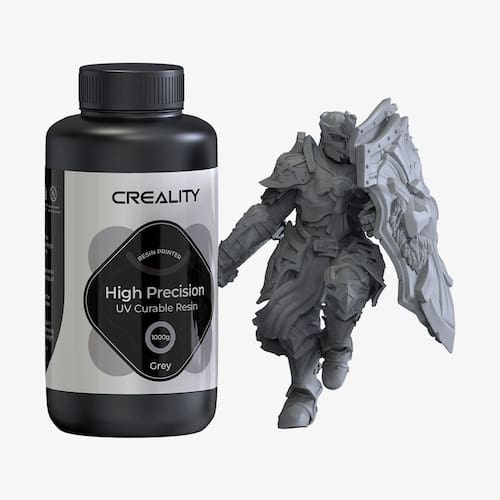 A resina Creality é geralmente utilizada para impressão 3D. É conhecida por seu alto nível de detalhe e acabamento suave, tornando-a ideal para imprimir miniaturas e modelos intrincados.