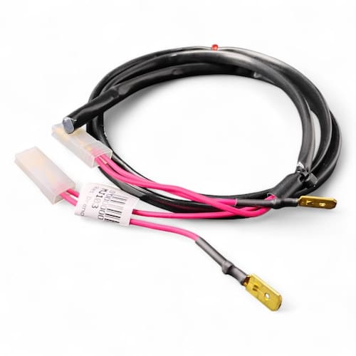 A resistência possui quatro terminais, dois machos e dois fêmeas. A conexão é feita no terminal da resistencia do equipamento, operando em paralelo com a resistencia do evaporador. Quando a placa inicia o degelo, também ativa a resistência do dreno, garantindo a desobstrução contínua da saída de água, que é direcionada para a bandeja do compressor onde evapora.
