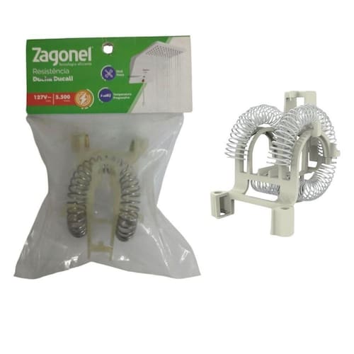 Resistência Ducha Zagonel Ducali - 127v~5500w Voltagem: 127VPotência: 5500WComposição: Termoplásticos, Ligas de Alumínio, Ferro, Cobre e Zinco.Garantia: 3 meses Modelo Compatível: - Ducha Ducali Eletrônica A imagem do produto é ilustrativa e pode variar de tonalidade e cor de acordo com a configuração de cada monitor. Os objetos que compõem a foto ambientada não acompanham o produto. Fotos meramente ilustrativas
