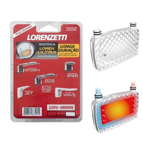 Resistência Lorenzetti 3065-a Ducha Acqua Storm / Acqua Star 220v~6800w Compatível com: - Acqua Storm Ultra - Acqua Star Ultra - Acqua Duo Ultra - Acqua Jet Ultra - Acqua Wave Ultra - Acqua Duo Flex Tensão: 220V Potência: 6800W Composição: Ligas de Cobre, Aço, Termoplástico. Garantia: 90 dias A imagem do produto é ilustrativa e pode variar de tonalidade e cor de acordo com a configuração de cada monitor. Os objetos que compõem a foto ambientada não acompanham o produto. Fotos meramente ilustrativas. Ean: 7896451864055