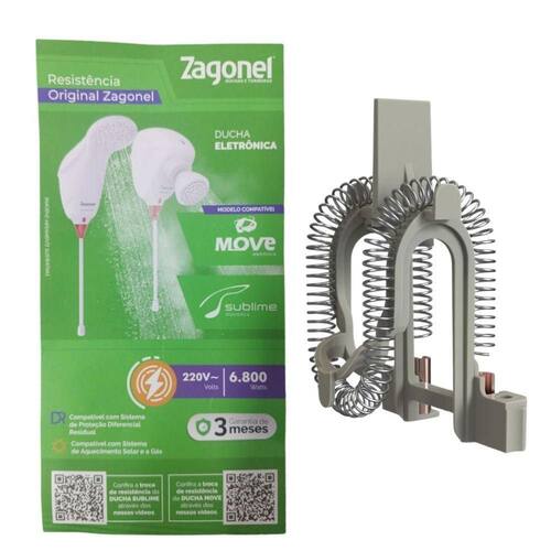 Resistência Zagonel Ducha Eletrônica Move E Sublime - 127v~5500w Tensão: 220VPotência: 6800W Composição: Ligas de Cobre, Aço, Termoplástico Garantia: 90 dias Compatível com:- Sublime Eletrônica- Move Eletrônica A imagem do produto é ilustrativa e pode variar de tonalidade e cor de acordo com a configuração de cada monitor. Os objetos que compõem a foto ambientada não acompanham o produto. Fotos meramente ilustrativas.