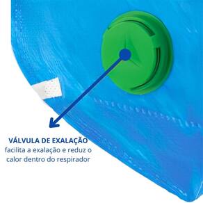 Especificações técnicas - Modelo: com válvula, oferecendo conforto extra e redução do calor interno. - Eficiência de filtração: classificação PFF3, bloqueando partículas finas e contaminantes. - Conforto: design ergonômico com elásticos resistentes e ajuste anatômico. - Certificado de Aprovação (CA): 38505, conforme as normas brasileiras de segurança.
