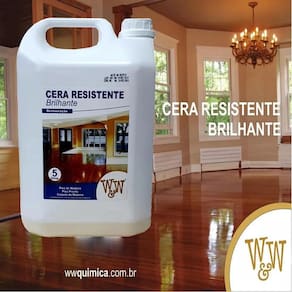 Restaura Madeira Piso Velho Novo Resistente Super Brilhante A Cera Resistente Brilhante W&W é uma cera restauradora para pisos de madeira formulada com polímeros encapsulados de alta resistência à base de água. BENEFÍCIOS- Alta resistência, proporcionando uma baixa necessidade de manutenção- Resistência ao atrito- Cobre riscos superficiais em pisos de madeira- Pode ser usada em pisos de madeira, como assoalhos, tacos, piso pronto engenheirado e sobre todos tipos de vernizes aplicados- Esta cera pode ser usada para restaurar pisos residenciais, comerciais e industriais em ambientes internos com acabamento brilhante INFORMAÇÕES TÉCNICAS- Formulado com polímeros acrílicos e com alto teor de sólidos, a base dágua sem solventes - O rendimento pode variar entre 40m² a 50m²- Precauções: Conserve fora do alcance das crianças e dos animais domésticos. Não ingerir. Evite a inalação, aspiração e contato com os olhos e a pele. Em caso de contato com os olhos ou com a pele, lave imediatamente com água em abundância. Em caso de ingestão, não provoque vômito e consulte imediatamente o Centro de Intoxicações ou o médico levando o rótulo do produto. Evite o contato prolongado com a pele. Depois de utilizar este produto, lave e seque as mãos- Prazo de validade: 24 meses MODO DE USAR: Fazer um teste prévio na área a ser restaurada para saber se já foi aplicada alguma outra cera no piso. Caso já tenha sido encerado com outras ceras, é aconselhado fazer a remoção usando o W&W Removedor Concentrado. Após o uso do Removedor, aguardar 24 horas para a aplicação da W&W Cera Resistente Brilhante. Verificar se o piso está completamente limpo e seco. Aplicar uma demão da W&W Cera Resistente Brilhante diretamente sobre o piso com o auxílio de um passa cera ou microfibra. Aguardar aproximadamente 1 hora e repetir a operação. Na primeira demão o piso já ficará com brilho, mas a segunda demão é que dará a resistência e durabilidade no piso evitando enceradas frequentes. Liberar para tráfego após 1 hora da última demão.