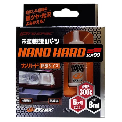 Nano hard - coat restaurador de plásticos soft99 Indicado para peças plásticas sem pintura de automóveis: retrovisores, para choques, grelhas do para-brisa, plásticos internos, maçanetas, etc . Características Formulado com composto de silício, possui alta durabilidade 6 meses a 1 ano e resistência ao calor até 300° ; Promove uma camada vítrea coat sobre o plástico, que restaura o brilho das peças plásticas esbranquiçados devolvendo o preto e a aparência ; Promove proteção contra o ressecamento e a perda de brilho; Indicado para peças plásticas sem pintura de automóveis: retrovisores, para choques, grelhas do para-brisa, plásticos internos, maçanetas, etc; Pode ser aplicado em partes plásticas dentro do motor: tampa de motor, silenciador, etc. Pode ser Utilizado em plásticos lisos ou texturizados. Usar preferencialmente em cores pretas e cinza escuro. Aplicação Lave e limpe bem o local, removendo a sujeira e a oleosidade remova ceras ou produtos revitalizadores ; Seque bem a superfície; Retire uma parte da esponja que acompanha o produto Aplique o produto no lado preto da esponja Passe uma fina camada sobre o plástico espalhando uniformemente o produto. Obs: utilize sempre esponja nova a cada aplicação; Aguarde 5 minutos e lustre com uma flanela seca e limpa sem exercer pressão. Tempo de secagem ao toque: 24 horas. Cura total 3 a 4 dias. Dimensões da embalagem c x l x a : 0,16m x 0,11m x 0,07m Conteúdo da embalagem: 01 nano hard - coat restaurador de plásticos soft99 8ml + 02 esponjas especiais. Rendimento aproximado: 02 para choques grandes Atenção: as compras realizadas por pessoa jurídica estão sujeitas à cobrança de icms-st, conforme protocolo icms 41, de 4 de abril de 2008. Caso você tenha dúvidas sobre o percentual a ser aplicado, consulte a cláusula segunda, §1° do referido protocolo. Imagens meramente ilustrativas Ean: 4975759031314