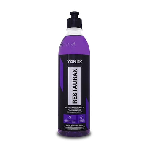 O RESTAURAX VONIXX é um produto que foi pesquisado e desenvolvido pelo nosso departamento técnico com a finalidade de restaurar e renovar superfícies plásticas tais como: Para-choques, painéis, laterais de portas etc. É um produto nobre e de altíssima qualidade que contém em sua formulação polímeros especiais que além de restaurarem, impermeabilizam e protegem a peça conta a ação do tempo, evitando a degradação precoce do plástico.