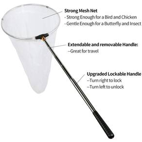 . Aço inoxidável e diâmetro de poliéster aproximadamente a 12" anel líquido para coleta, profundidade líquida de 24", buraco líquido de 2mm para evitar boletas e insetos voando para fora. A alça telescópica atualizada é bloqueável, destro apertado canhoto solto, mantenha-se estendido e não torça enquanto estiver sendo . . A alça se estende de 15" a 59", perfeita para crianças, adultos e coletores iniciantes.Redes para captura de espécimes de insetos, aptos a capturar diferentes boletas, libés, morcego, peixe, pássaro, abelha e outros insetos. A rede de captura de bugs profissionais é muito mais durável do que outras. Fácil de transportar, fácil armazenamento. Montagem rápida.
