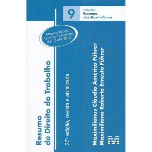História e conceitos básicos Princípios Direito Internacional Contrato individual do trabalho Sujeitos do contrato Alterações (jus variandi) Salário e remuneração Férias Suspensão e interrupção do contrato de trabalho Extinção Aviso prévio Estabilidade e fundo de garantia Prescrição Renúncia e transação Nulidades trabalhistas Greve Sindicato Justiça do Trabalho (Processo trabalhista) Segurança e medicina do trabalho Acidentes do Trabalho. O objetivo desta Coleção é o de oferecer ao leitor a mais exata e completa Doutrina, em cada um dos vários ramos do conhecimento jurídico, apresentada de forma sintética, em conceitos essenciais, com esquemas, resumos e gráficos elucidativos e complementada pela Jurisprudência mais recente e variada, além de Bibliografia selecionada. Como diz o Autor, na sua apresentação, sua finalidade é a visão panorâmica do assunto, o que só um resumo pode oferecer - pois não sabe onde está quem, fechado num apartamento, não viu, antes, pelo menos de relance, o edifício todo.