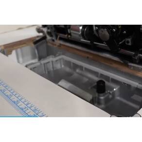 com motor eletrônico direct drive, lançadeira pequena, COMPRIMENTO DO PONTO ATÉ 5MM, ideal para tecidos leves, médios e espessos, equipada com função automática de posicionamento de agulha, caixa de controle e painel com display digital acoplados ao corpo da máquina.