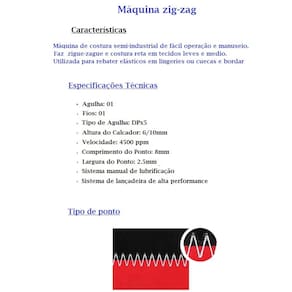 Máquina de Fácil operação e manuseio ,faz zig zag e costura reta em tecidos leves até meio pesados.