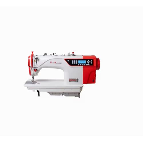 Máquina de costura industrial reta eletrônica SS19E-D4-PR-QI 220V para confecção de vestuário com tecido leves e médios.
