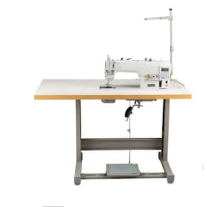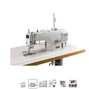 Máquina Reta Industrial Eletrônica com caixa de controle e painel acoplados ao cabeçote da máquina. Simplificando a montagem para alta produção. Possui uma agulha; Ponto fixo com motor direct drive; Levantamento de calcador; Retrocesso automático; Corte de linha automático semi-rotativo; Linhas grossas. Posicionamento de agulha superior e inferior, velocidade de 5000 pontos por minuto com baixo ruído, executando costuras com ponto de 5mm e lubrificação automática. Ideal para tecidos leves e médios. Motor direct drive capaz de economizar até 60% de energia comparado com motores convencionais, além de garantir maior agilidade na produção, tendo ainda parada superior e inferior.