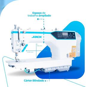 Máquina de Costura Reta Eletrônica Jack A5E - 220v A Jack traz uma inovação tecnológica ao mercado de máquinas de costura mundial que sem dúvida servirá de “marco” para uma nova tendencia de equipamentos computadorizados com inteligência para interagir cada dia mais com o operador, diminuindo intervenções técnicas, aumentando a qualidade e conformidade de pontos e ainda fornecendo dados de produção a softwares e aplicativos através de conexões WiFI. (sem fio)