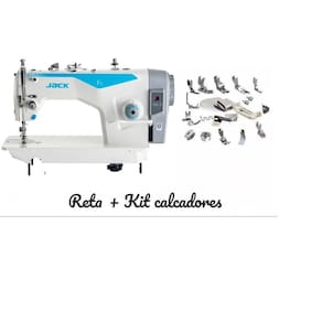 Máquina Reta industrial 1 agulha com motor eletrônico direct drive, equipada com função automática de posicionamento de agulha, caixa de controle e painel com display digital acoplados ao corpo da máquina. Máquina de Costura Reta Direct Drive Jack F5 + Kit C/ 18 calcadores Máquina de Costura Reta Jack F5 Direct Drive (Substituiu a F4) Design mais moderno.