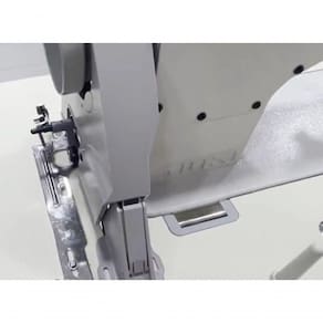 Sistema de levantamento do calcador por alavanca e joelheira;