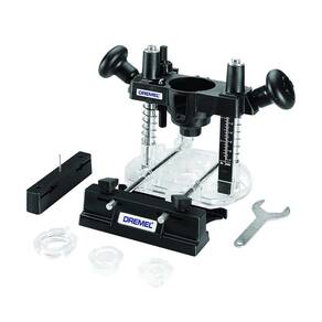 Converte a sua ferramenta Dremel numa tupia de imersão para fresar círculos, letras e incrustações, rebordos decorativos, bem como fresar paralelamente a uma aresta.