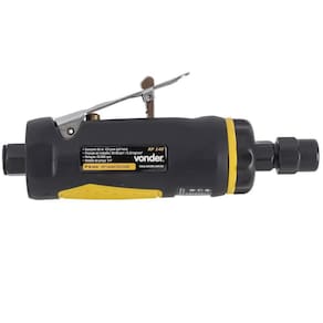 - Marca: Vonder - Modelo: RP140 - Código: 62.56.000.140 - Consumo de ar: 4,5 pcm pé3/min - Pressão de trabalho: 90 lbf/pol - Medida da pinça:1/4 - 6,35 mm - Corpo em alumínio com cobertura emborrachada, proporcionando maior resistência e conforto durante o manuseio - Indicada para operações de acabamento com o auxílio de acessórios adequados à rotação da máquina - Manter a ferramenta constantemente lubrificada e utilizar sempre o regulador de pressão e o lubrificador de linha com óleo pneumático - Rosca de entrada de ar da retifica:1/4 NPT interna fêmea - Rotações por minuto rpm : 22.000/min - Comprimento: 190 mm - Dimensões da embalagem: 50x72x190 mm - Peso: 600 gramas - Garantia: 90 dias