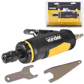 Retífica Pneumática 1/4 Pol. Reta Curva 6,35 mm Profissional RP140 Vonder A retífica da marca Vonder é um produto indicado para o desbaste de metais e borrachas. Ele consegue aplainar superfícies cônicas e redondas, uma necessidade na fabricação de peças. É indicada ainda para remover camadas de tinta e outros materiais que possam comprometer o resultado visual, auxiliando no lixamento. - Marca: Vonder - Modelo: RP140 - Código: 62.56.000.140 - Consumo de ar: 4,5 pcm pé3/min - Pressão de trabalho: 90 lbf/pol - Medida da pinça:1/4 - 6,35 mm - Corpo em alumínio com cobertura emborrachada, proporcionando maior resistência e conforto durante o manuseio - Indicada para operações de acabamento com o auxílio de acessórios adequados à rotação da máquina - Manter a ferramenta constantemente lubrificada e utilizar sempre o regulador e o lubrificador de linha com óleo pneumático - Rosca de entrada de ar da retifica:1/4 NPT interna fêmea - Rotações por minuto rpm : 22.000/min - Comprimento: 190 mm - Dimensões da embalagem: 50x72x190 mm - Peso: 600 gramas - : 90 dias Itens inclusos: - 1 Retífica pneumática Reta Vonder - 2 Chaves de troca - 1 Pinça de 1/4 - 6,35 mm - 1 Conector de engate rápido macho Marca: Não Informado