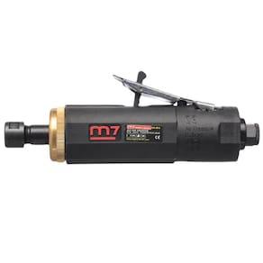 Características técnicas: Retifica reta com corpo fabricado em liga de alumínio emborrachado. Potência de 0,9 hp e 20.000 rpm Alavanca com mecanismo de acionamento e de controle de velocidade Conjunto de pontas montadas com pedras de esmerilhar Adaptador / conector com rosca de 1/4' Maleta plástica para condicionamento e transporte