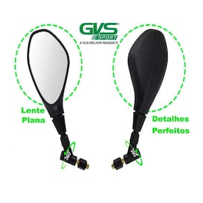 - Marca: GVS - Modelo: Retrovisor Lente Plana - Cor: Preta - Rosca: Honda M10 (Todas as Hondas até o Ano 2018. Os anos seguintes precisa retirar o Adaptador). - Compatível: Honda, Suzuki, Dafra e kawasaki - Haste: Com Giro 360° - Tamanho da haste: 12mm - Lente: Plana - Aplicação: Diversas - Material: Plástico ABS - Origem: Brasileira