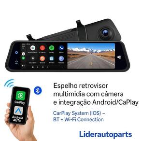 Retrovisor Com Carplay E Android Auto E Câmera De Ré