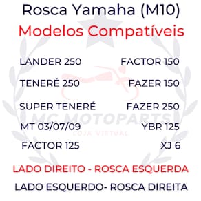 - Adaptável em todos modelos de moto padrão Yamaha (Rosca Universal M10);