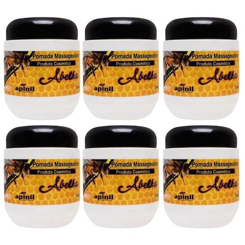 Revenda atacado 6 pomadas massageadora abelha 240g apinil Pomada massageadora abelha auxilia no desconforto adquirido no decorrer do dia a dia, proporcionando sensação de bem estar. Modo de usar: aplicar o produto na região desejada e massagear suavemente com as mãos até total absorção. Precauções:Uso externo Evite contato com os olhos, caso aconteça, enxague com água abundante.Em caso de sinais de intoxicação ou irritação, suspender o uso e procurar orientações médicas.Não utilizar sobre a pele irritada ou lesionada.Não utilizar durante a gravidez.Manter fora do alcance de animais e crianças. Anvisa Aut. Func. /ms : 2.04890.7Processo nº : 25351.726715/2018-74