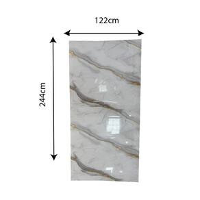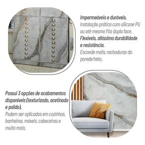 O Revestimento Decorativo Premium Placa Marmorizada Calacatta Dourada oferece o visual sofisticado do mármore natural, sem o custo elevado, peso excessivo e manutenção complicada. Com acabamento polido e espessura de apenas 0,3cm, esta placa flexível é leve, fácil de instalar e pode ser recortada com um simples estilete.