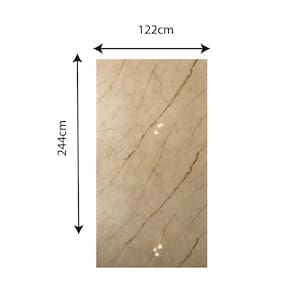 O Revestimento Decorativo Premium Placa Marmorizada Calacatta Crema oferece o visual sofisticado do mármore natural, sem o custo elevado, peso excessivo e manutenção complicada. Com acabamento polido e espessura de apenas 0,3cm, esta placa flexível é leve, fácil de instalar e pode ser recortada com um simples estilete.