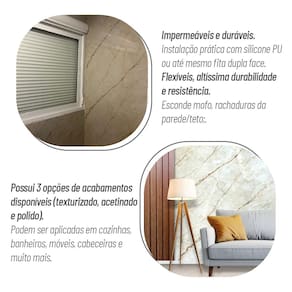Cada placa cobre aproximadamente 2,97m² e é ideal para esconder imperfeições como marcas de mofo, infiltrações, rachaduras e revestimentos antigos. Pode ser aplicada diretamente sobre cerâmicas existentes, evitando a necessidade de quebra-quebra ou nivelamento do rejunte, tornando a instalação limpa e eficiente.