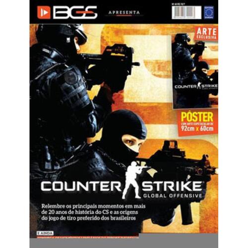 PÔSTER GIGANTE COM ARTE ESPETACULAR DE 92 CM X 60 CM Counter Strike Global Offensive Relembre os principais momentos em mais de 20 anos de história do CS e as origens do jogo de tiro preferido dos brasileiros. E ainda: Conheça os momentos lendários do esport imortalizado por meio de grafites nos mapas.