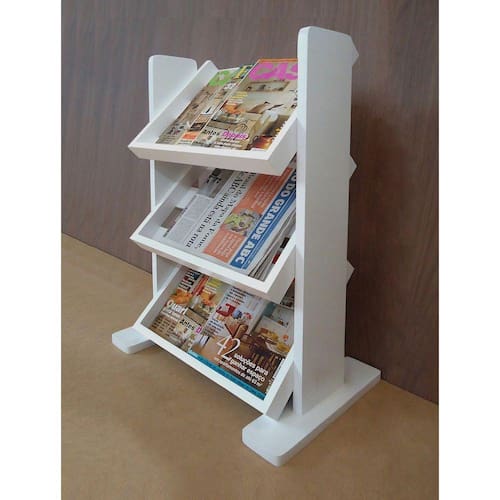 Revisteiro De Piso Chão Porta Revistas Livros Branco Laca