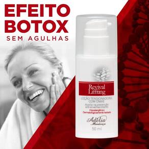 A Revival Liffting - Loção Tensionadora com DMAE é exatamente o que você precisa para atenuar rugas e linhas de expressão, reduzir a flacidez e o aspecto cansado da face, melhorar o tônus muscular, aumentar a definição e contorno dos lábios e rosto. Com ação antioxidante e tensora (responsáveis pelo seu efeito “liffting”), o produto deixa a pele imediatamente suave e iluminada, ganhando elasticidade, tônus e favorecendo o rejuvenescimento gradativo. Atuação em potência máxima para peles com ptose cutânea.