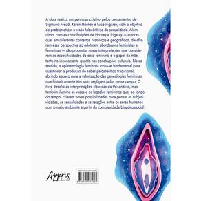 A obra realiza um percurso criativo pelos pensamentos de Sigmund Freud, Karen Horney e Luce Irigaray, com o objetivo de problematizar a visão falocêntrica da sexualidade. Além disso, com as contribuições de Horney e Irigaray ? autoras que, em diferentes contextos históricos e geográficos, desafiaram essa perspectiva ao adotarem abordagens feministas e femininas ? são propostas novas interpretações que consideram as especificidades do sexo feminino e o papel da mãe, tanto no inconsciente quanto nas construções culturais. Nesse sentido, a epistemologia feminista torna-se fundamental para questionar a produção do saber psicanalítico tradicional, abrindo espaço para a valorização das genealogias femininas que historicamente têm sido negligenciadas nesse campo. O livro desafia as interpretações clássicas da Psicanálise, mas também ilumina as vozes e os legados femininos que, ao longo do tempo, criaram novas possibilidades para pensar as subjetividades, as sexualidades e as relações entre os seres humanos com o meio ambiente a partir da complexidade biopsicossocial.