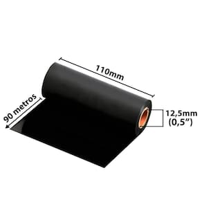 Ribbon de Cera Premium 110x91 mm Preto Zebra Argox Elgin Ribbon de Cera 110 x 91 mm - Preto