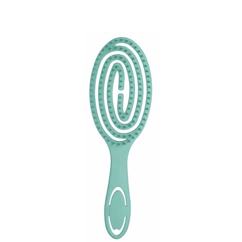Escova de cabelo com base flexível e cerdas arredonddas ideal para ser usada no chuveiro para desembaraçar o cabelo com condicionador, tornando o cabelo macio e hidratado.